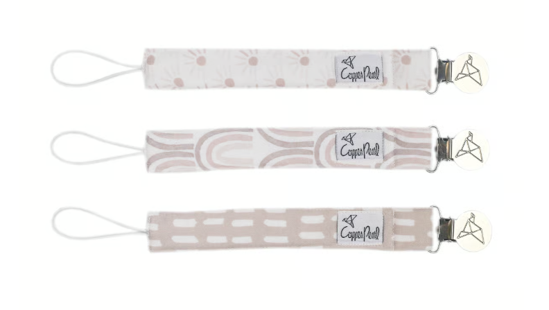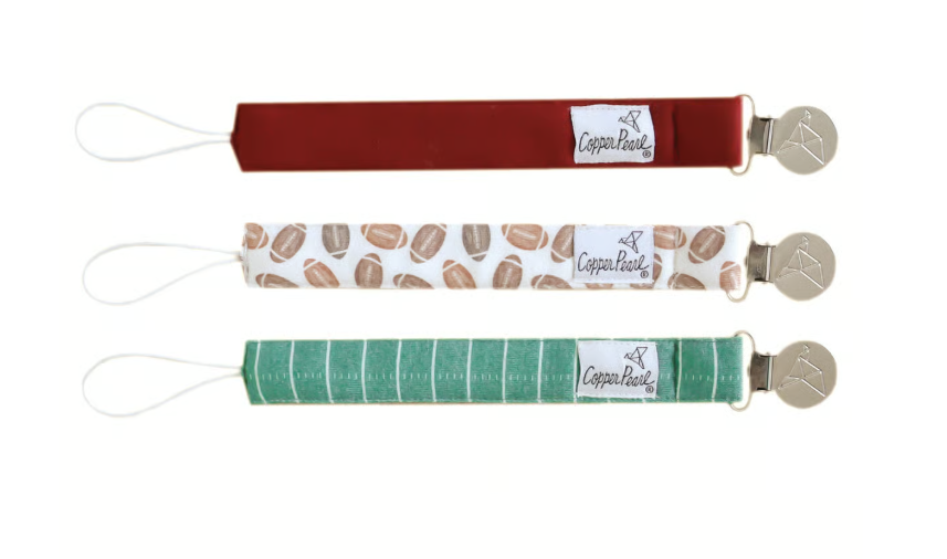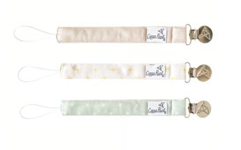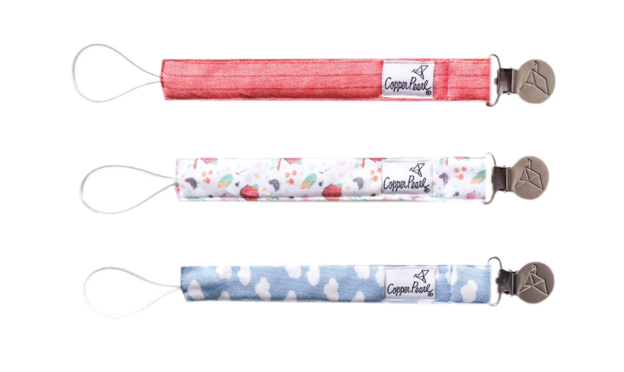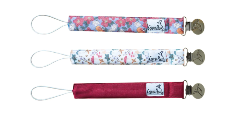 This unique Binky Clip features a premium knit strap lined with absorbent fleece to help soak up drool. Simply attach baby's pacifier or teether to one end, then fasten the stainless steel clip to clothing, blankets or baby gear. No more floor drops or pacifier pick-ups!