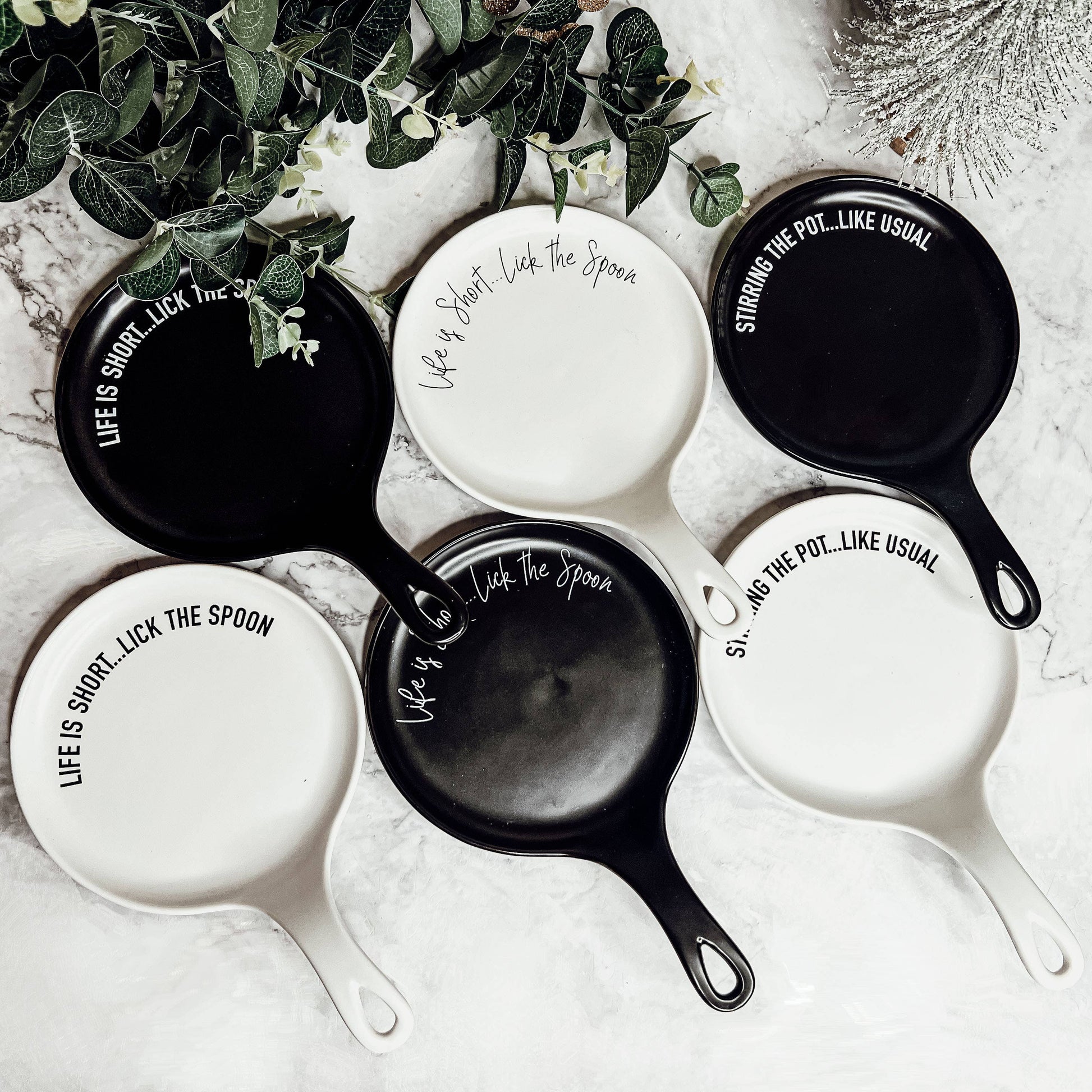 NEW LARGER Spoon Rests + We've added a White Version! IT A REST - SPOON REST and WOODEN SPOON SET Includes both pieces  Adds some fun to your kitchen with several sayings to choose from. Makes that perfect gift for someone who has everything or you don't know to shop for as well! Made from Porcelain and Wood Spoon Rest NEW: 9" Long, 5.75" Wide (Round portion), .75" H (thickness of circular portion); Handle is approx 1.5" in the air and 3" long Wooded Spoon: 9.25" L Kitchen Gifts Unique Housewarming Gifts Cooking Lover Gifts Kitchen Home Decorations Ceramic Spoon Rests Neutral Interior Kitchen Decorations Spoon rest Sets