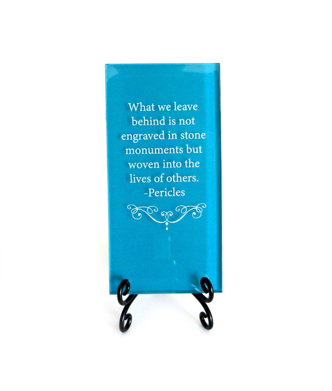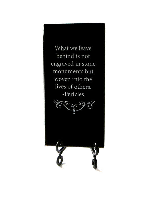 What we do matters, and we are remembered for how we treated people more than for our deeds. This ancient quote can also serve as a memorial. Whatever its significance for you, it looks beautiful printed on a glass plaque. Each plaque is three by six inches, and comes with a folding, black metal easel.